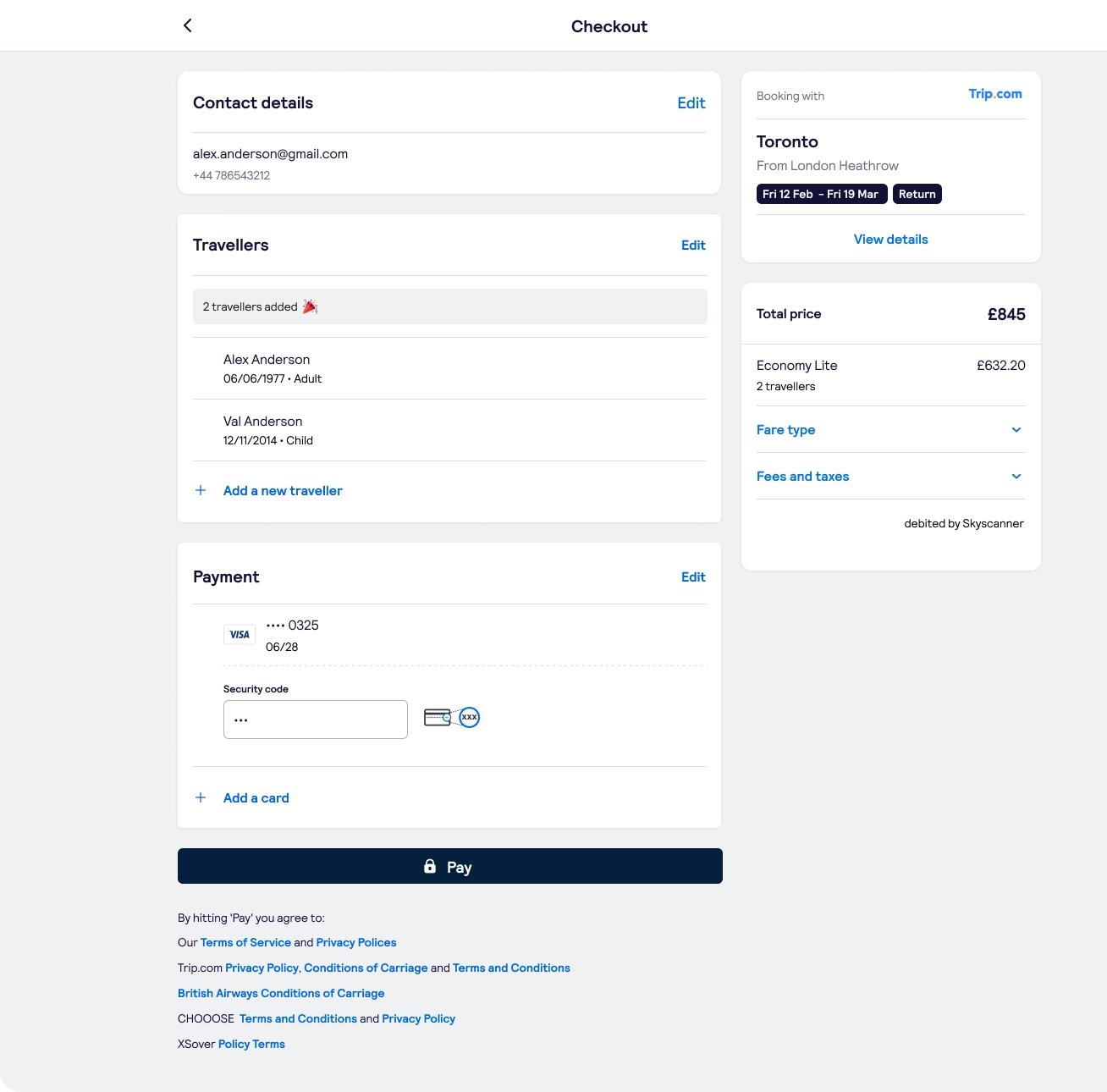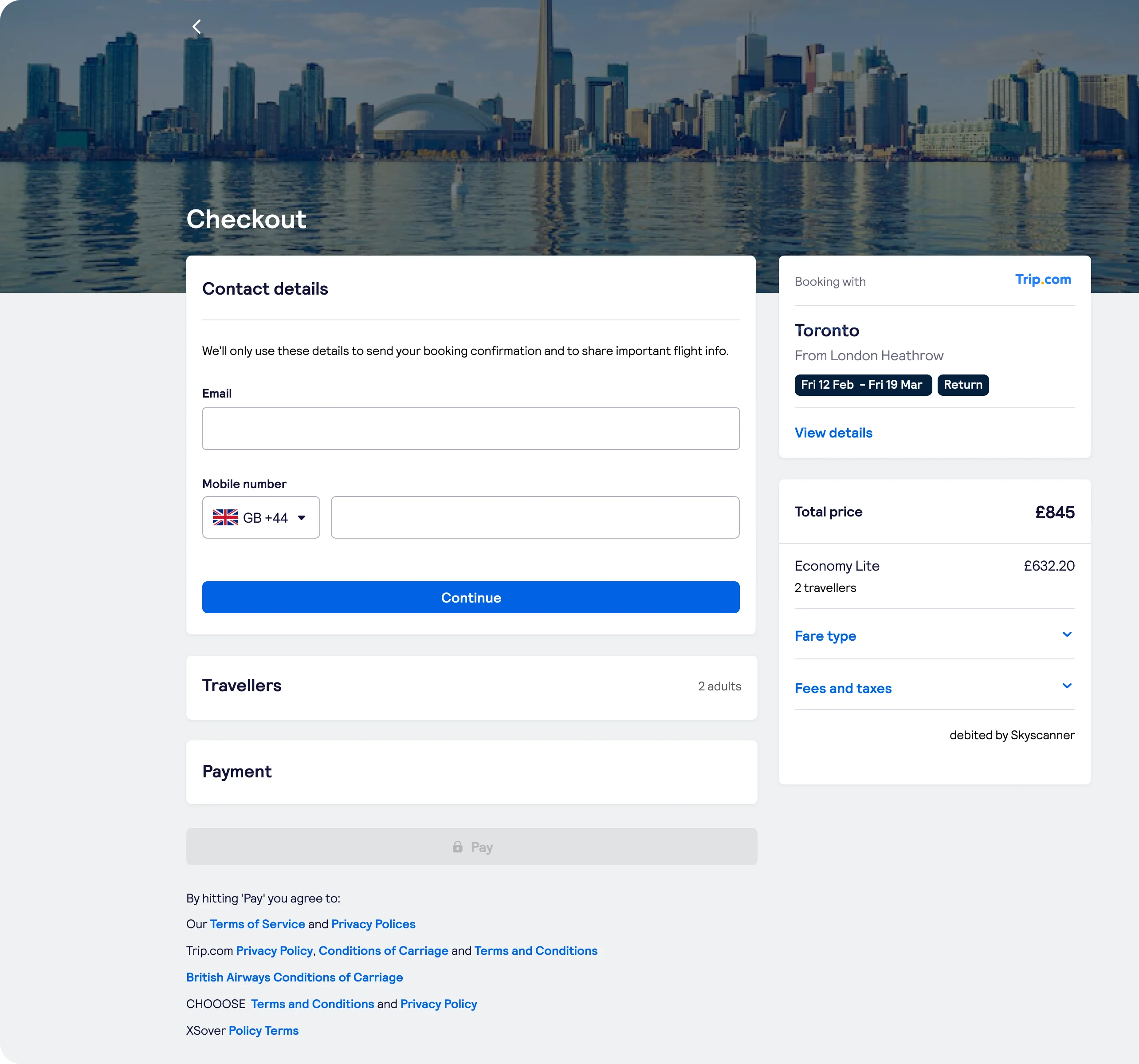 To improve the user experience, Skyscanner's checkout process was completely redesigned with a focus on creating a single, unified, and transparent process.