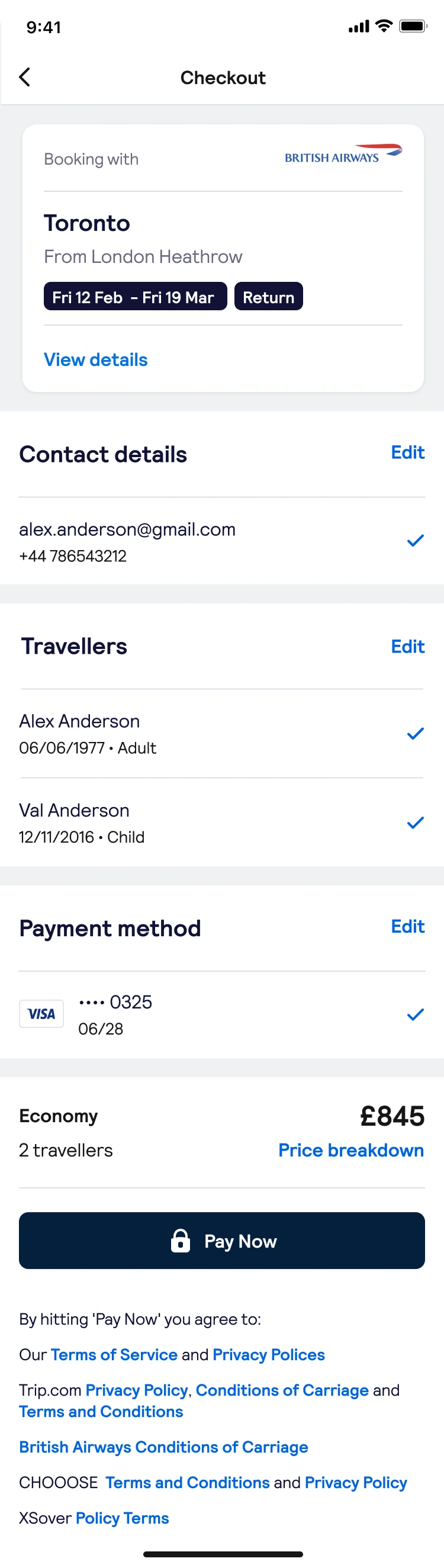 This streamlined approach simplified booking across all product offerings by consolidating five separate checkouts into one intuitive flow a 'One Page' Checkout with stateful panels and progressive disclosure techniques with smooth transitions and animations was implemented to minimise friction and cognitive load for the traveller after an heuristic evaluation and several user tests were completed. The direction addressed the IA of the checkout notably providing a clear breakdown of all costs without requiring exhaustive user input.
